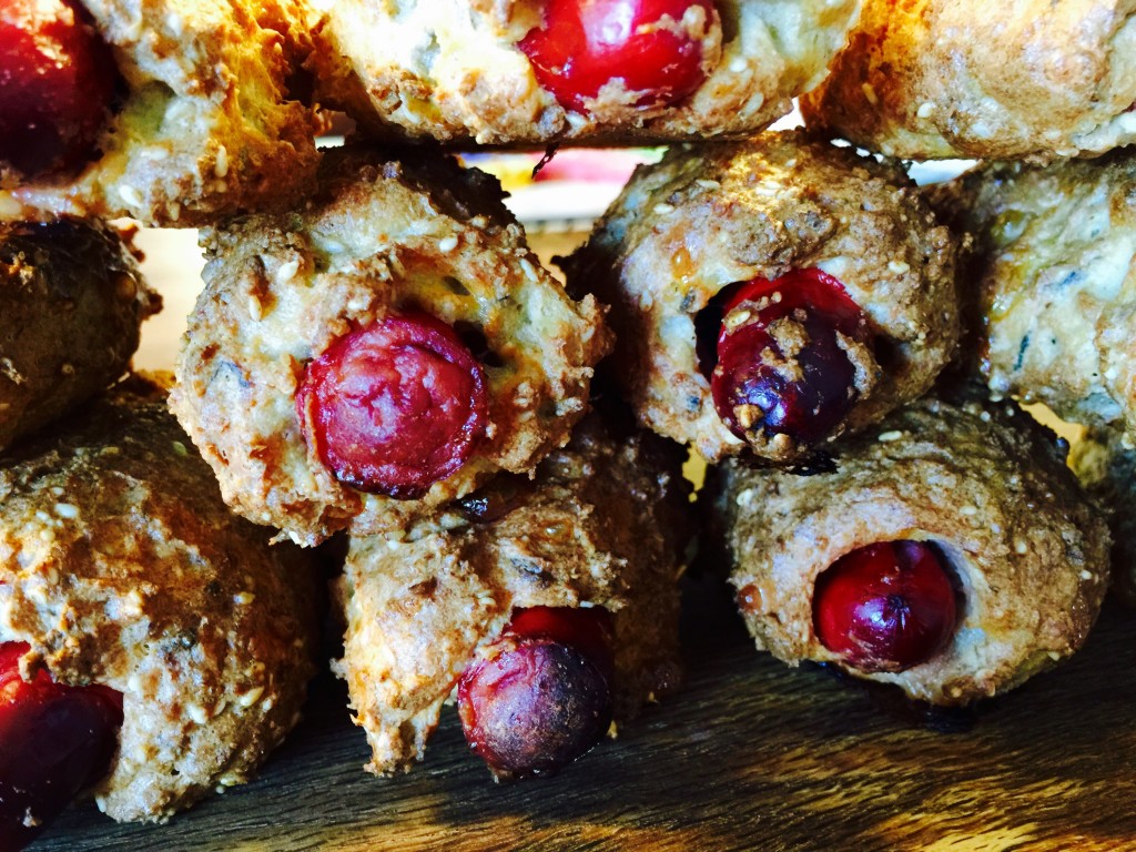 16 små pølsehorn Dej: 4 æg 1 dl cremefraiche 20 g smeltet smør 1 1/2 dl mandel mel 1/2 dl fibrex 2 tsk loppefrø skaller 1/2 dl sesam frø 40 g revet ost 1 dl havremel – evt glutenfri Salt 1 tsk 1 tsk bagepulver 8 gode økologiske pølser- halvere dem. Pisk æg, creme fraise […]