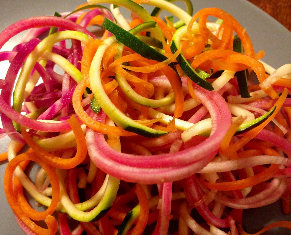 Gulerødder Squash Sølv beder Alle skåret i spiral skæren. Serveres rå- er både godt som pasta til f.eks spagetti og kødsovs eller i en eller som en salat.
