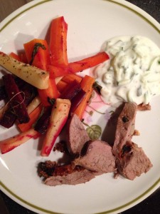 Lammekølle, rodfrugter og tzatziki:)))