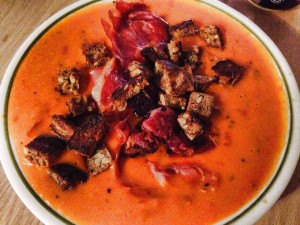 Tomat suppe med parma skinke og ristet rugbrød:))