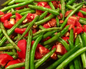 Grønne bønner med rød karry pasta