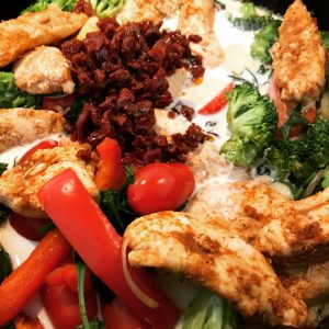 Pastasalat med kylling og bacon