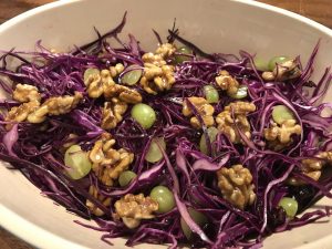 Rødkåls salat med honning ristede valnødder og vindruer